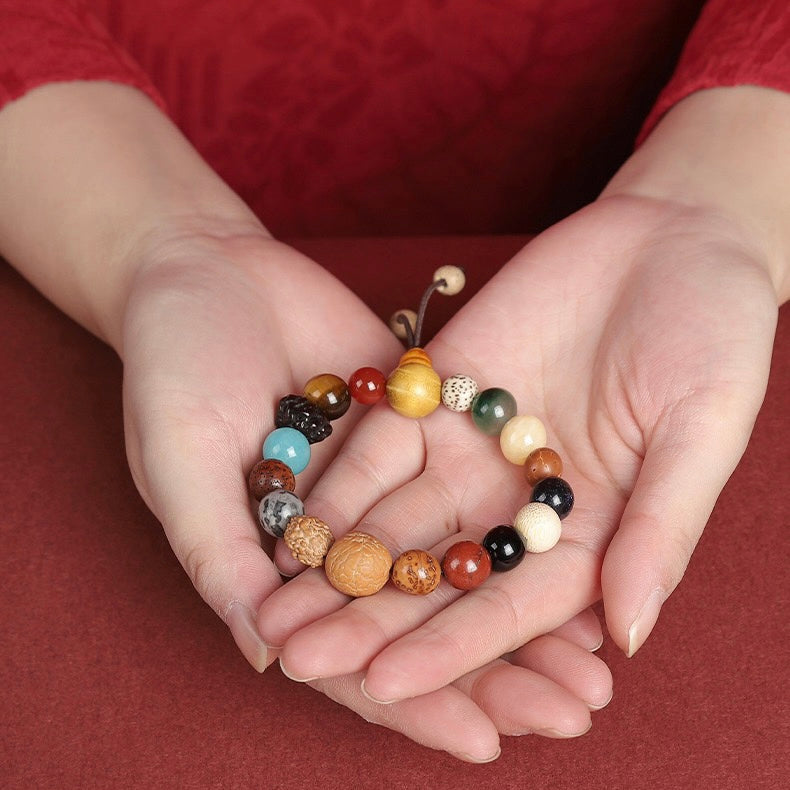 Each seed in this bracelet has its own unique texture and appearance, making it not only a meaningful accessory but also a visually stunning piece. The diversity of the seeds symbolizes the richness of life's experiences and the multitude of blessings one can receive.